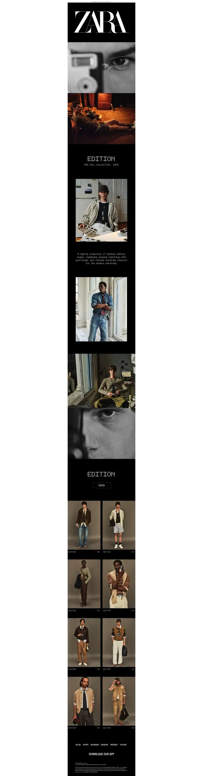 <a href="https://news.zara.com/pub/acc?_ri_=X0Gzc2X%3DAQjkPkSTRQGwRte78vDBS2wJlzdzanJkzbn3qWIflyopYkmwPzfOUX9rzdSUH55dJyESLIczcszbBDFbjtRVXtpKX%3DURWUYCT&_ei_=EPnv8P_qYOKF1ftwrETq_Nulbvi3o2oHhjefsPWeBiKNQK_SjPbT9PBnY49tTky-elwVwxd68OuUkY_Fd72OK7weISQy17yhCgsV6wGewH2c44Y3m0F-e94A3LEjHQRzJVtIEZ1bEiYUuPaJxh9TTM1MbCBIbEwyC-PjSyqwhj4dglcpc_yAPzwNlrXLkKIOGOTvqlSZK7D_1eIjaMS-3k6i3MU.&_di_=504f434pepairlml065ks31hgdid3pdo9u87rrdf95c9816e7fj0" target="_blank"> <img border="0" src="https://news.zara.com/assets/responsysimages/industria007/contentlibrary/campaigns/2025/07.julio/2025_08_01_norte_man_cw_edition_01_08/images/img_01.jpg" width="640" alt="" class="banner" /> </a>